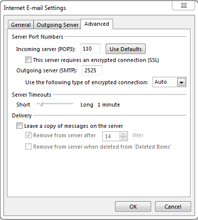 - Vul bij Uitgaande server (SMTP) 2525 in
